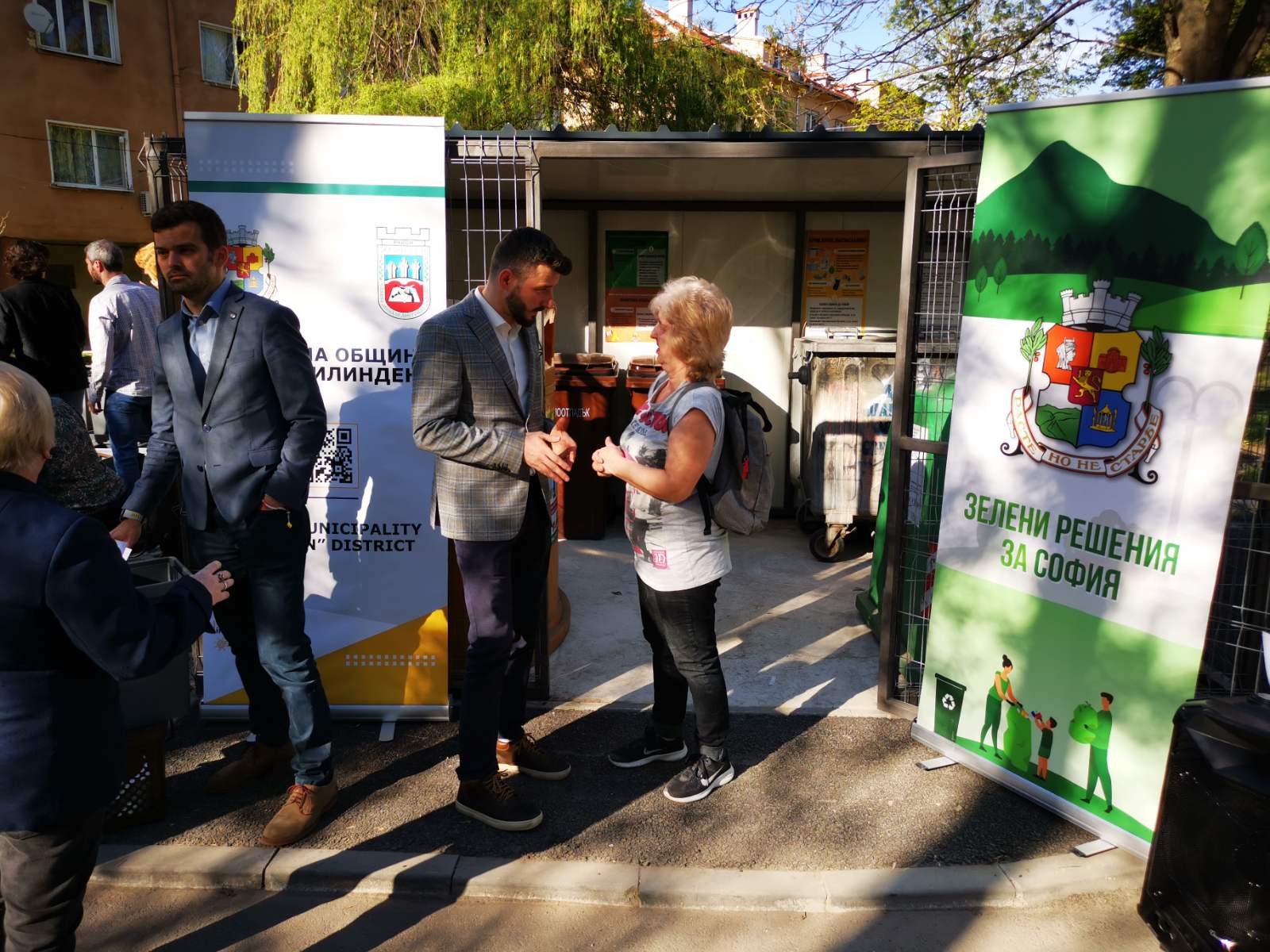 На 9 април 2024 г. от 17:00 до 19:00 ч., д-р Емил Бранчевски, кмет на район „Илинден“, г-жа Надежда Бобчева – заместник кмет на СО в направление „Зелена система, екология и земеползване“ и г-н Христо Копаранов – общински съветник дадоха начало на пилотната инициатива за разделно събиране на битовия боклук – опаковки от пластмаса, хартия, стъкло и биоотпадъци в кв. Захарна фабрика. „Целта е да се улесни процесът на сепариране на отпадъците. Идеята на акцията е да се обхване целия район и това да намали таксата смет от януари 2025 г. за домакинствата, които събират разделно“, съобщи Надежда Бобчева. „Когато районната администрация и Столична община работят в тандем, нещата се получават. Този проект е изключително важен за хората, затова раздаваме контейнерите за лично ползване. Разделното събиране намалява разходите на самите семейства. От мен ще дойде инициативата да разширим проекта в четирите квартали на района.“, заяви д-р Бранчевски. Г-н Христо Копаранов сподели впечатленията си от опита на Любляна и Загреб в областта на зелените политики. Този проект е свързан с чистотата на града и справедливото заплащане на сметосъбирането в крайна сметка. Колкото повече разделно събират гражданите и по-малко смесено изхвърлят, толкова по-малко плащат, като навикът започва от вкъщи.“, допълни общинският съветник. Пилотната инициатива цели също да проучи нагласите и да анализира адаптивността и възприетите ползи от страна на гражданите.