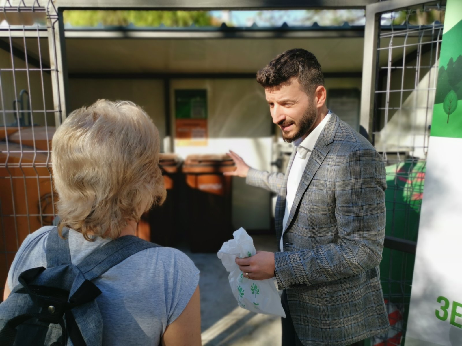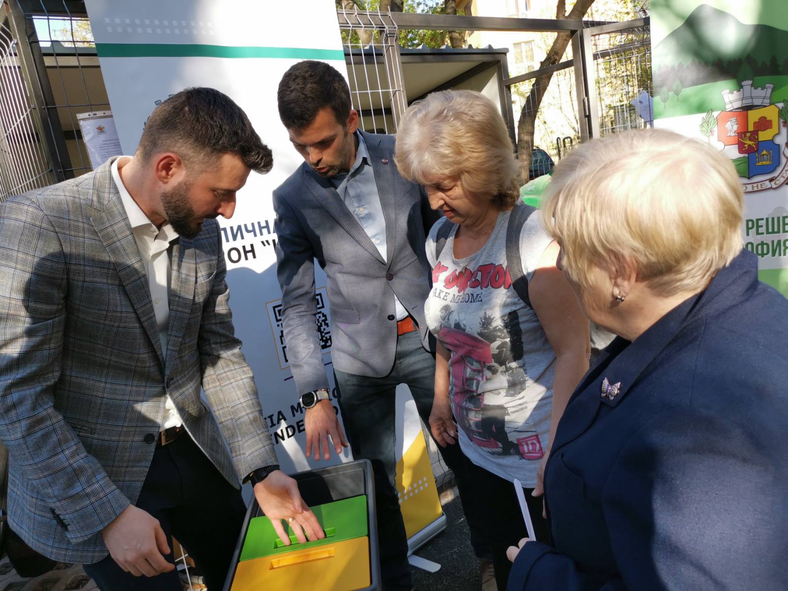В акцията се включиха директорът на дирекция „Планиране и управление на дейностите по отпадъци“ на Столична община – Лилия Ангелова-Колева и нейният екип. В кампанията за цялостна организация по рециклиране участват 300 домакинства, които се сдобиха безплатно с комплекти за битово ползване: 30-литров контейнер с три отделения за различен вид опаковки, 10-литрова вентилирана кофа за биоотпадък заедно с комплекти от биоразградими пликчета за нея, чували с 2 кг. компост, както и ключ за достъп до най-близката клетка с големи контейнери за съответния вид отпадък.