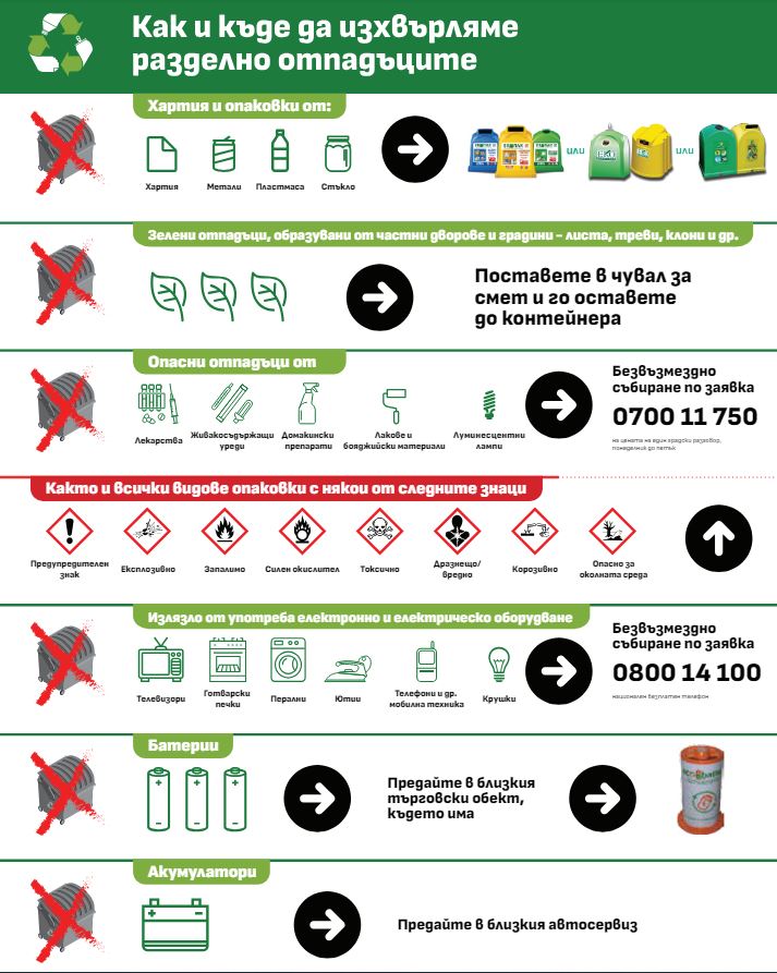 Разделно събиране на битови и график за извозване на едрогабаритни отпадъци